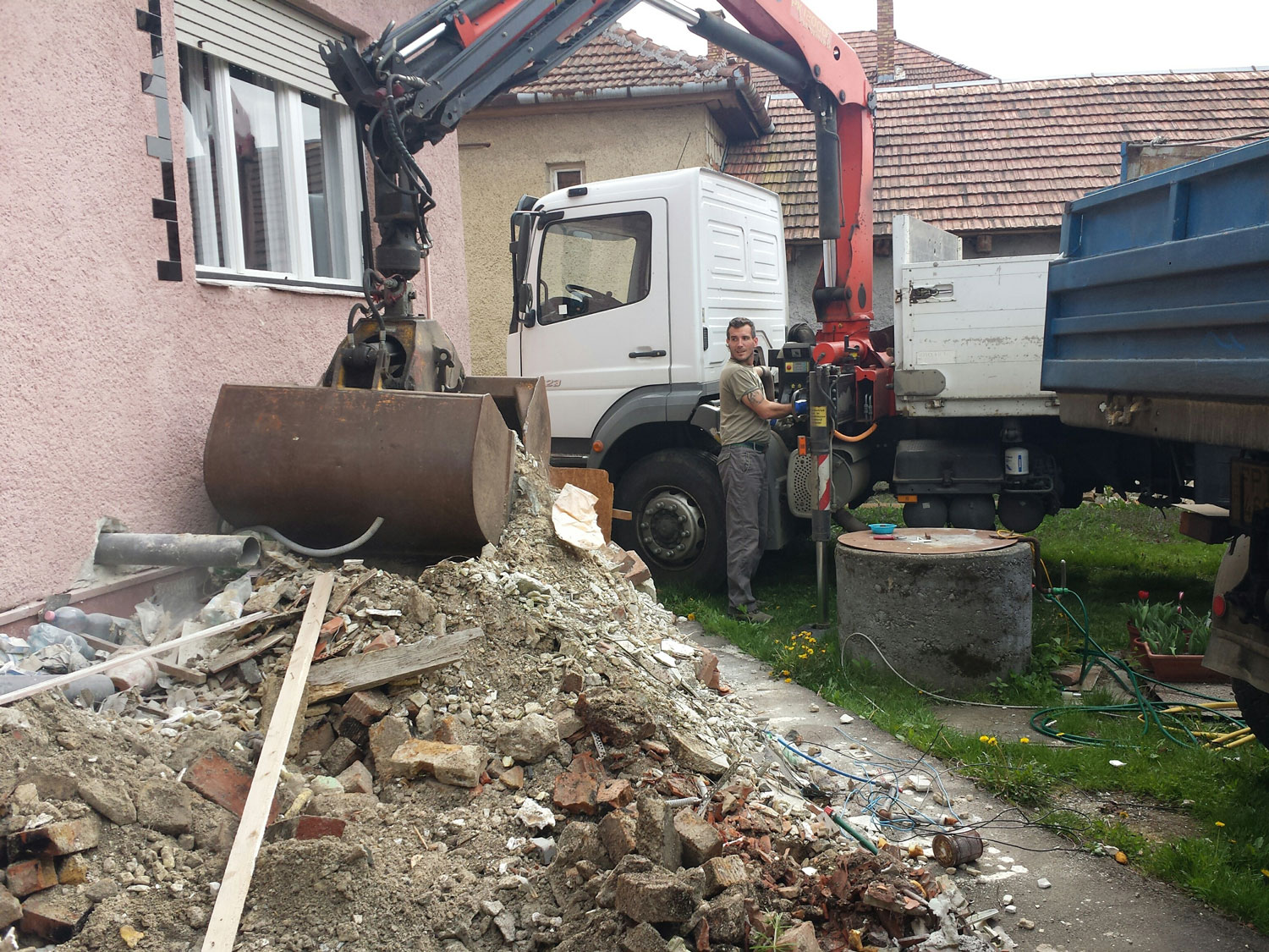 Önrakodós teherautóval felrakjuk és elszállítjuk pl. építkezés során megmaradt sittet, törmeléket, földet, növényi hulladékot, szemetet. Nem kell külön autót és rakodó gépet fizetni, mi ezt egy önrakodós teherautóval megoldjuk.